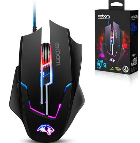MOUSE GAMER ERGONÔMICO LED RGB ATÉ 3200 DPI EXBOM MS-G270