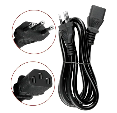 O cabo de força ATX de 1,5 metros segue o novo padrão de tomadas brasileiras, com plugue de 3 pinos. Possui proteção de plástico nos pinos para evitar choques acidentais por contato.